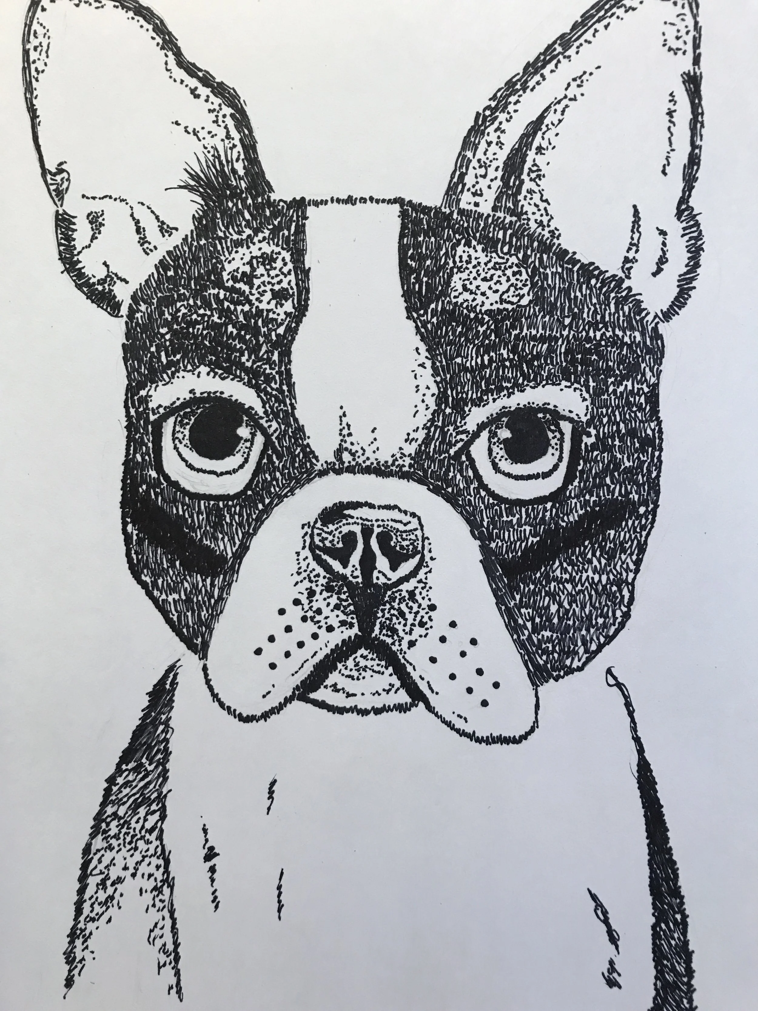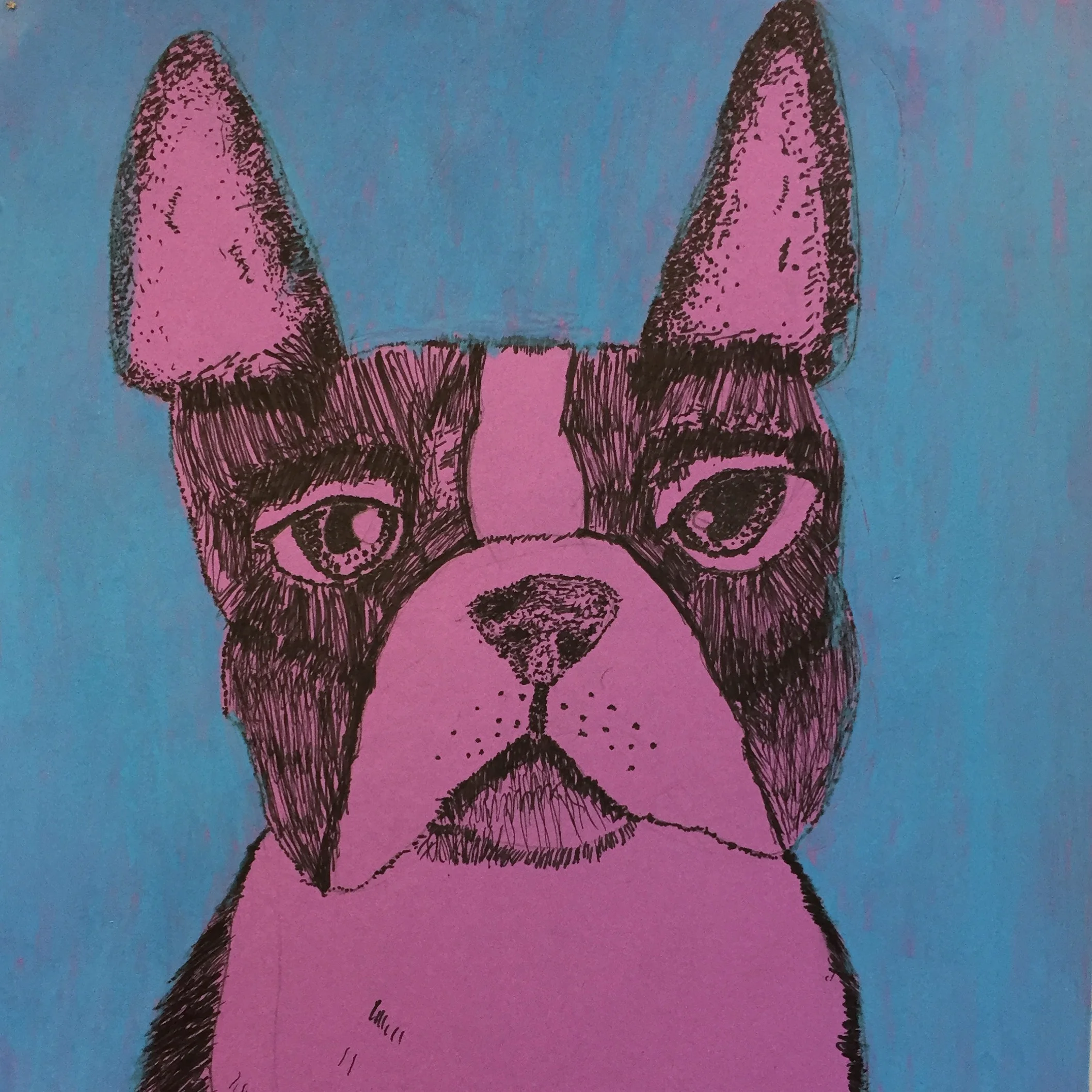 One of the best things about making art is making it your own. Many of our students choose the same French bulldog image when they reach the CREATE: TEXTURE (PEN & INK) lesson of our Curriculum, and it's always amazing to see how each student uniquely interprets the same image.